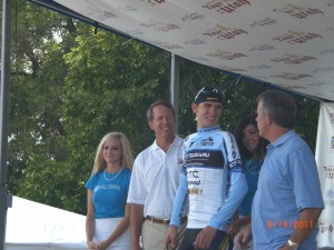 Dave Anderson, UnitedHealthcare’s CEO of Southern CA division. I met Dave in Utah while Rory Sutherland of UnitedHealthcare Pro Cycling Team was warming up for Utah’s TT and asked him about Rory’s chances to win stage 3. He said he’ll be a contender because he can do a good uphill TT, but likely not win because he’s a bigger guy than the other climber-time trialists (6’2”, 169 lbs). “Rory’s tweeted about reconning the TT route,” I said. Dave chuckled. “I have a house in Vail,” where he implied Rory has passed a good bit of time lately.