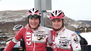 Brady Kappius & Mitch Hoke (l - r) at snow crit finish, Teva Winter Mt. Games (photo by Mary Topping)