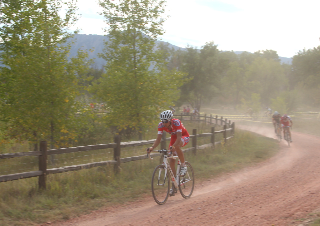 Robin Eckmann, road racer, shows cyclocross strength in Boulder Cyclocross Series opener » Robin Eckmann (California Giant Berry Farms/Specialized) early in the race at Valmont Bike Park