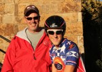 - Josh Schroeder slips his foot into taped shoe before Vail time trial start