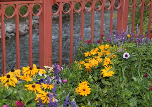 Shelden and Eckmann time trial to first and second in Vail; Krause third » Flowers along Gore Creek near covered bridge in Vail