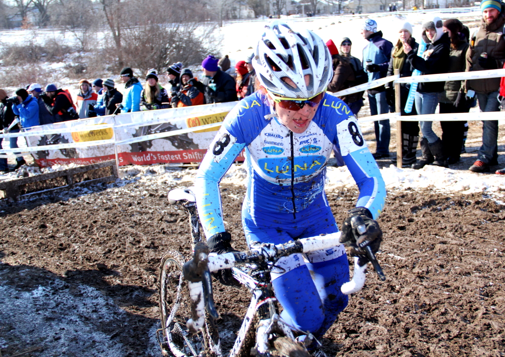 A rare opportunity to break Katie Compton’s cyclocross stars and stripes streak » Teal Stetson-Lee over the barriers in sixth position in lap 1