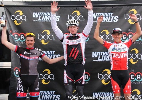 Criterium postcards » Cat 3 podium ages (l to r): 3rd Maxx Chance 17, 1st Nathan Brown 31, 2nd Gage Hecht 15
