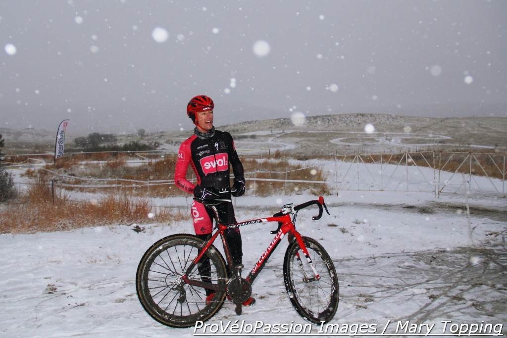 Junior Gage Hecht wins elite Colorado state cyclocross championship » Spencer Powlison in a post-race snow globe