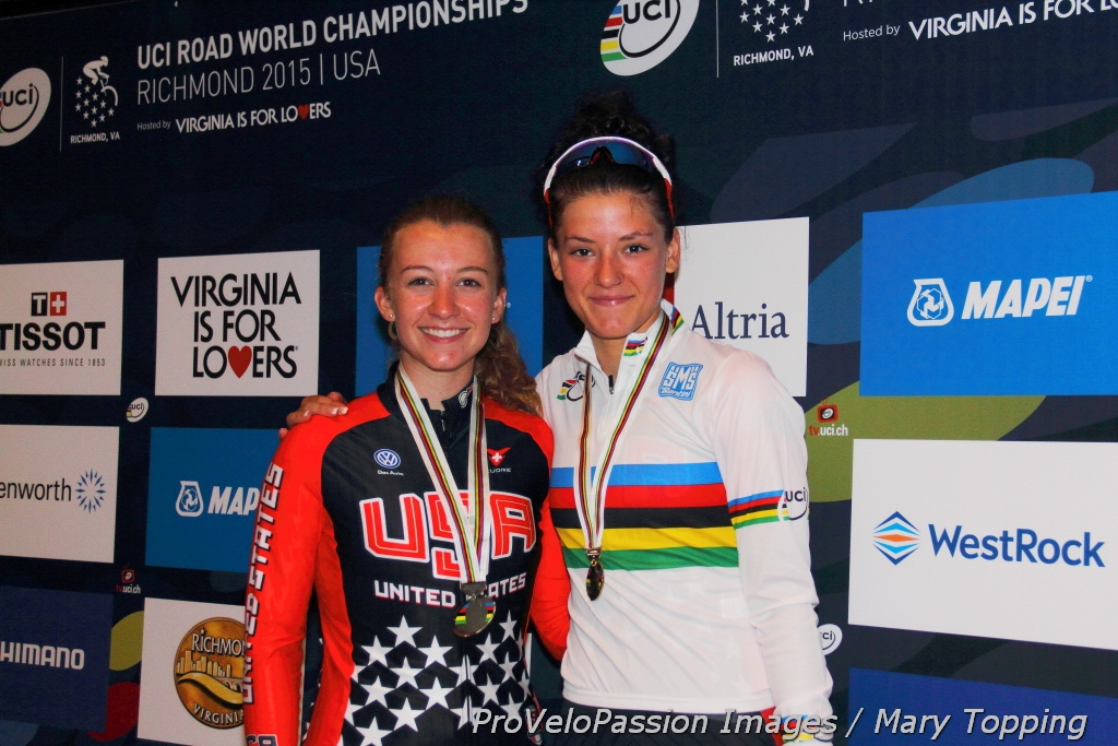 Three grateful medalists: Chloe Dygert, Emma White, and Agnieszka Skalniak » Emma White and Chloe Dygert