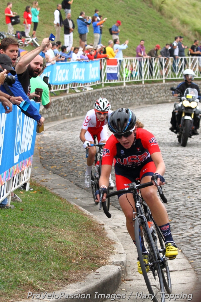 Three grateful medalists: Chloe Dygert, Emma White, and Agnieszka Skalniak » White and Skalniak in break