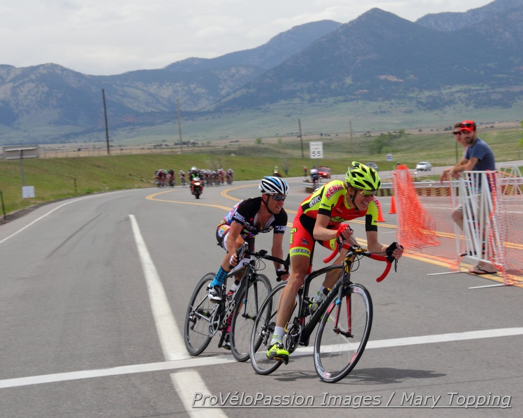Horizon Organic/Einstein Bros men guided the peloton, Calabria inserted safely after them. With the break containing no significant threats to the overall as well as one of their teammates, the Horizon boys didn’t need to chase overly hard. But unfurling too much leash could hurt Winn’s chances at a hat trick.